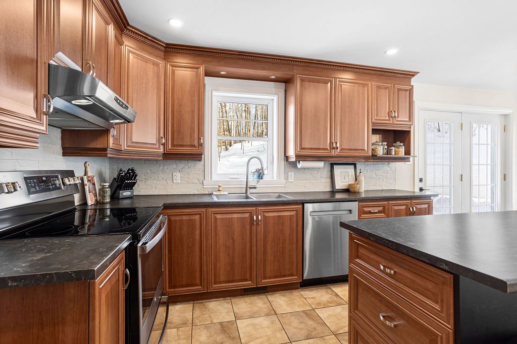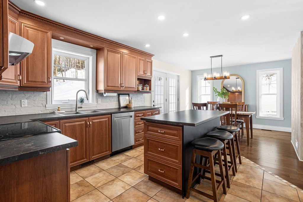 Entretenue avec rigueur, elle se distingue par de nombreuses améliorations hors du commun, exactement ce que recherchent les acheteurs avertis. Située au bout d'un cul-de-sac, perchée sur une butte offrant une belle élévation, elle profite d'un emplacement intime et privilégié.