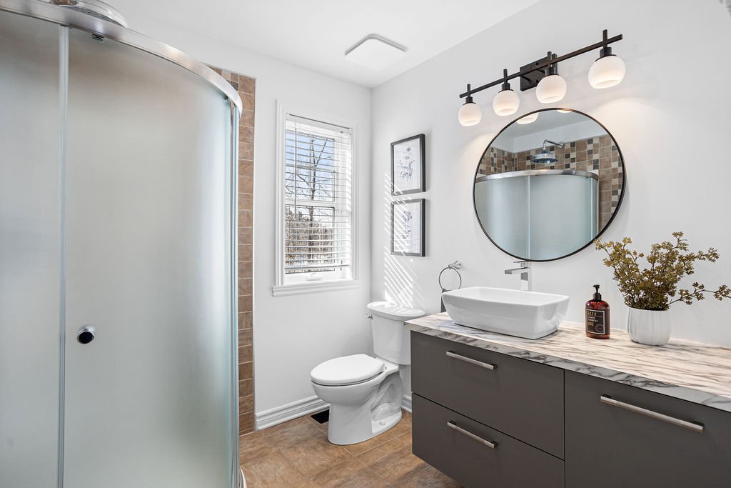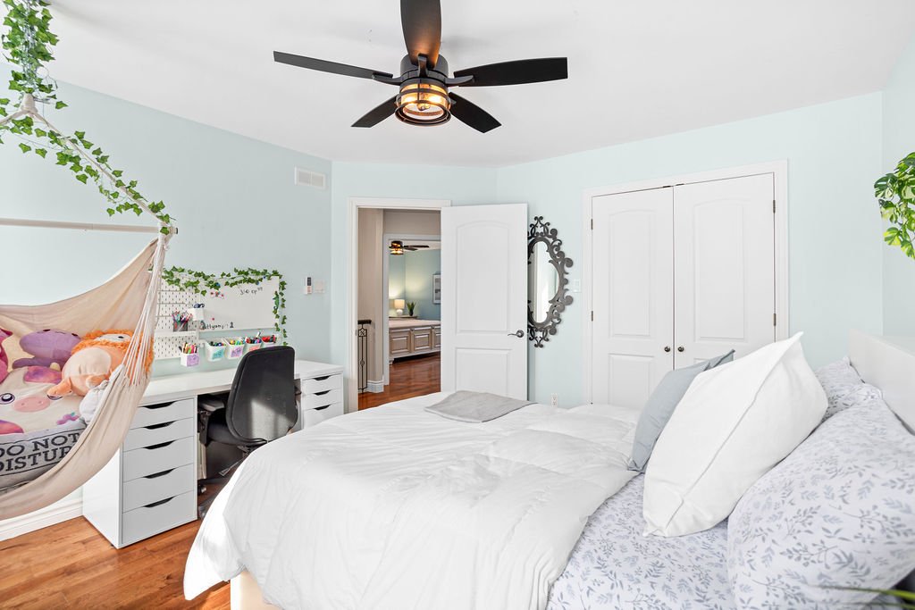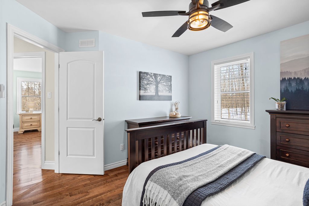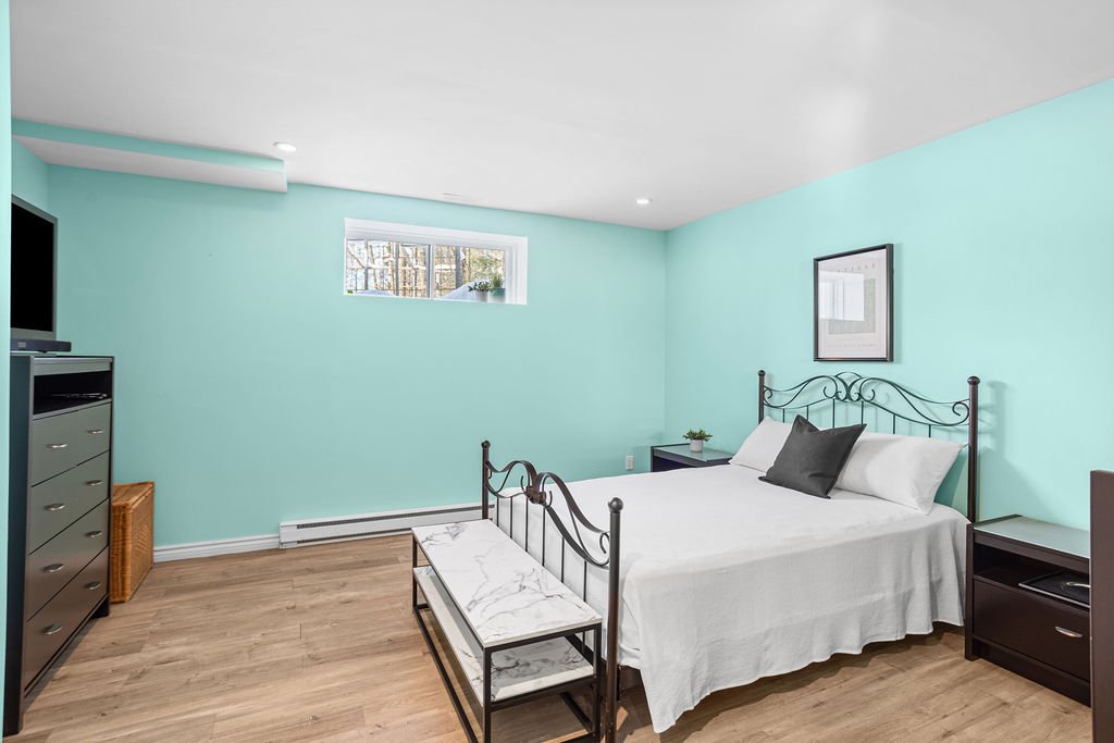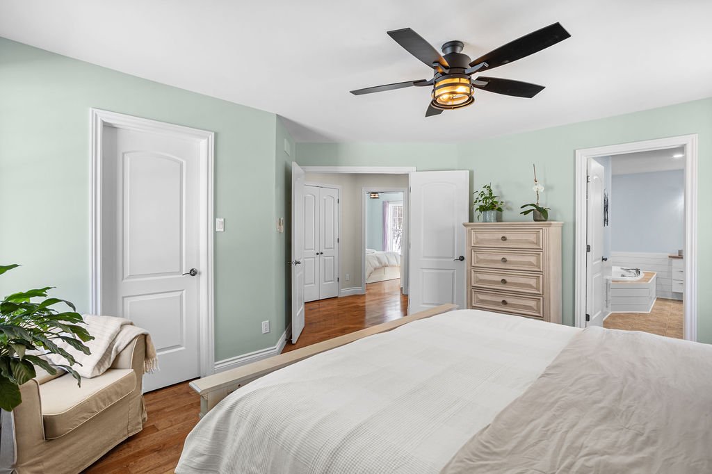 La maison propose quatre véritables chambres à coucher, dont trois à l'étage et une au sous-sol, offrant une configuration idéale pour une famille ou pour aménager un bureau à domicile. La chambre principale bénéficie de sa salle de bain attenante, créant un espace privé et confortable.