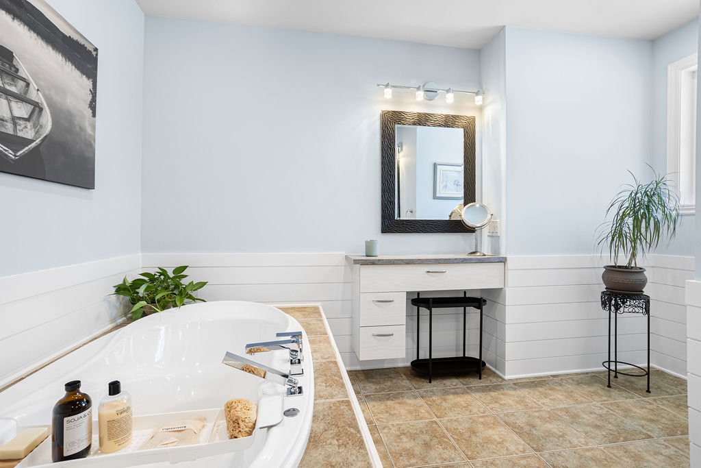 On y retrouve également un garage attaché, un vaste jardin, ainsi qu'un grand balcon sur pieux pouvant accueillir un spa et un sauna sans compromis sur la structure. L'ajout de la thermopompe a permis d'obtenir une certification énergétique, et les planchers du rez-de-chaussée ont été remplacés récemment.