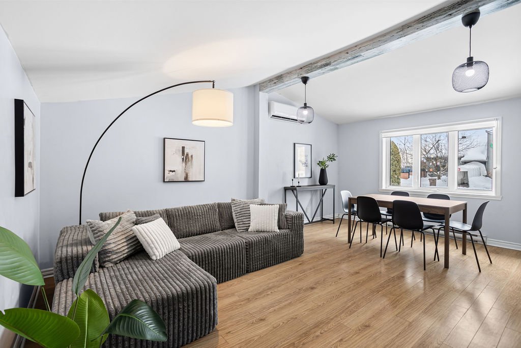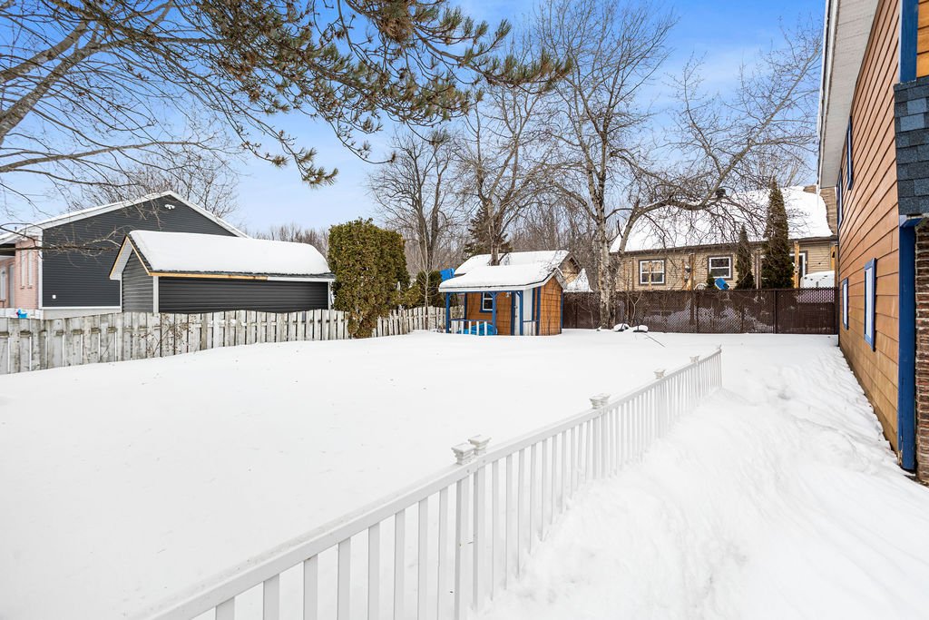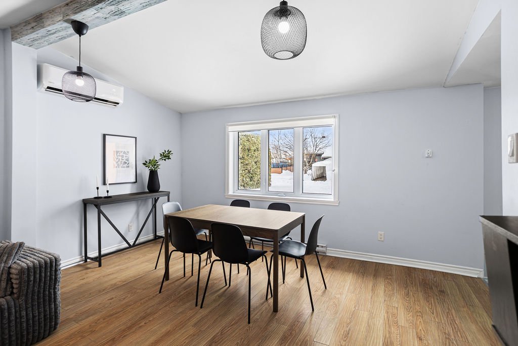Propriété de 3 chambres, dont 2 à l'étage, avec 2 salles de bain et garage attaché. Fenêtres neuves au 2e étage et au garage, thermopompe 2 têtes, borne électrique type 2 et toiture 2021. Terrain de 7 300 pi² bordé de haies pour une belle intimité.